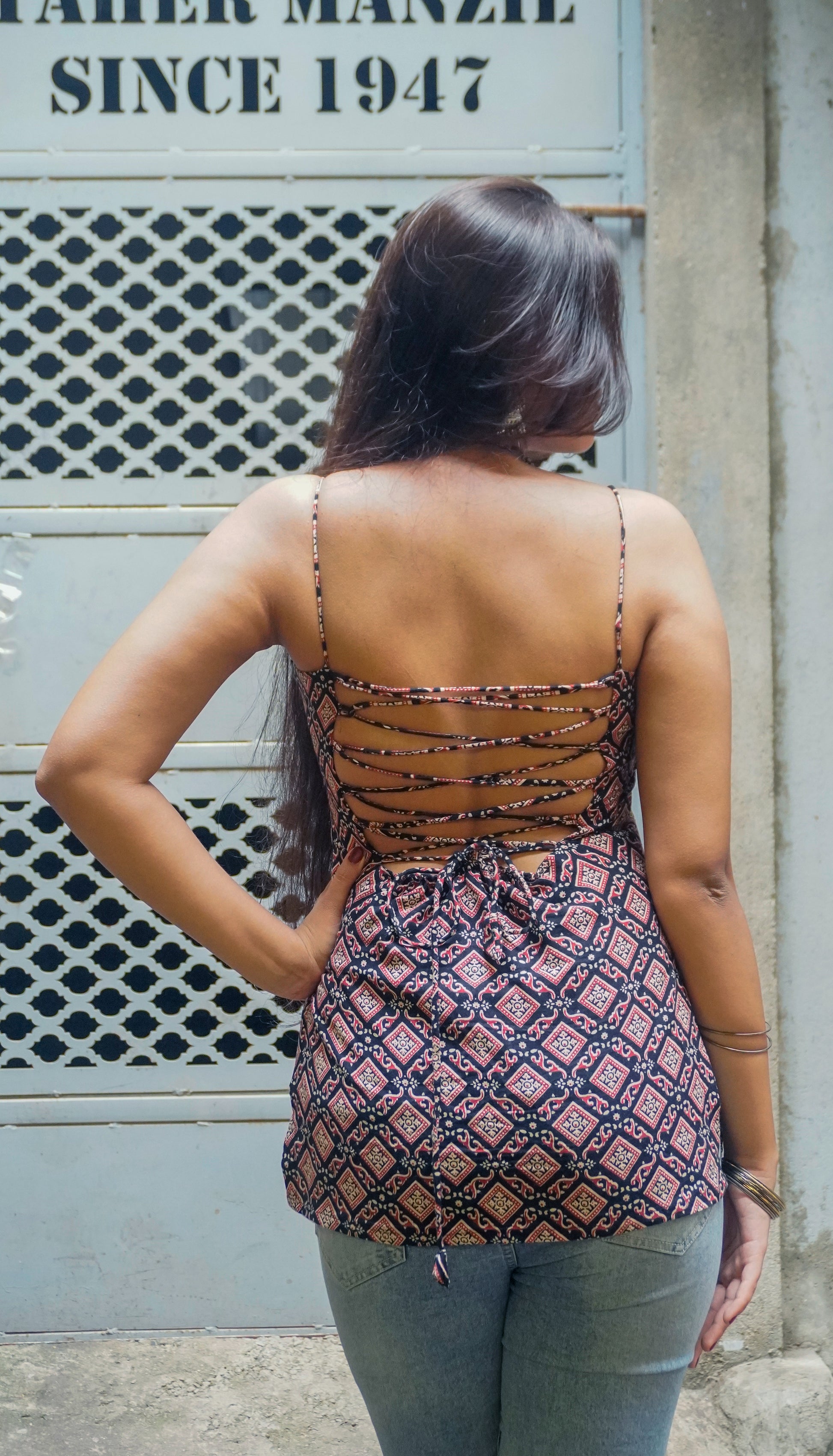 Add touch of timeless elegance to your wardrobe with the handcrafted halter top featuring a vibrant red floral hand block printed Clothing by RUZA.